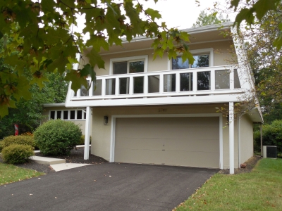 This very open and airy 3 bedroom and 2 1/2 bath home has been updated throughout and sits on a tranquil wooded lot in back with a ravine. New curly maple laminate floors on main level and new neutral Shaw carpeting throughout upstairs; Freshly painted inside and out; New kitchen with cherry front cabinets, faux granite counters, stainless steel appliances; Wall of sliding glass doors and windows to screened porch in great room; Separate three season room off of kitchen; Additional stoned patio for outdoor space; Extra storage in two car attached garage with sink and shelving; Balconies off each bedroom; Remodeled bathrooms with low flush commodes; Wood burning fireplace. Community pool and park!